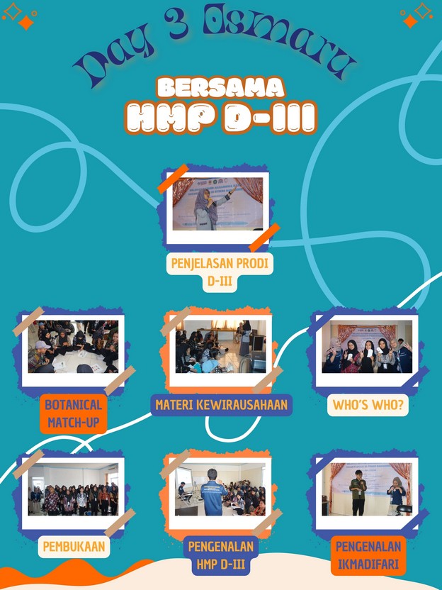 Kegiatan OSMARU HMP D3 FARMASI dilaksanakan pada tanggal 04 September – 05 September 2024, kegiatan dimulai dengan pengenalan Himpunan Mahasiswa Prodi D3 Farmasi dan IKMADIFARI kemudian dilanjutkan materi pembukaan mengenai Prodi D3 Farmasi dan Prospek Kerja nya yang di sampaikan oleh ibu apt. Hayatus Sa’adah, M.Si. selaku Kaprodi D3 Farmasi setelahnya di lanjutkan game Botanical Match-Up yang bertujuan untuk mengenalkan Maba dengan tumbuh-tumbuhan yang familiar di bidang farmasi, selanjutnya materi kedua mengenai Kewirausahaan Dalam Bidang Obat Herbal yang di sampaikan oleh ibu Risa Supriningrum, S.Si., M.M. selaku Ketua Senat STIKSAM dilanjutkan kembali dengan game yang kedua yang dinamai Who’s Who yang tentunya di ikuti dengan antusias oleh Maba.