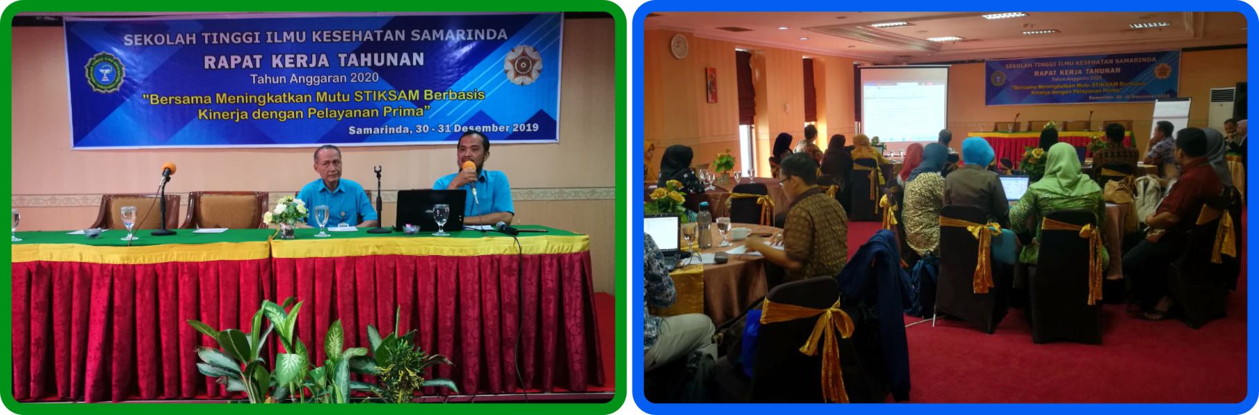 STIKSAM kembali menyelenggarakan Rapat Kerja Tahunan Tahun 2019 di penghujung tahun tepatnya tanggal 30-31 Desember 2019 bertempat di Hotel Grand Victoria Samarinda. Acara dibuka oleh Ketua STIKSAM Bapak Supomo, M.Si., Apt dan dihadiri oleh seluruh dosen dan karyawan. Kegiatan utama meliputi penyampaian Laporan Pertanggungjawaban oleh Senat, Wakil Ketua I, Wakil Ketua II, LPPM dan BPM. Dilanjutkan penyusunan Rencana Anggaran Belanja tahun 2020 dengan mengakomodir semua usulan dari bidang terkait. Acara terlaksana dengan baik dan penuh kekeluargaan dan dihasilkan beberapa kesepakatan terkait jam kerja, ijin, cuti dan sebagainya. Semoga sesuai moto, STIKSAM semakin inovatif dan berkemajuan.