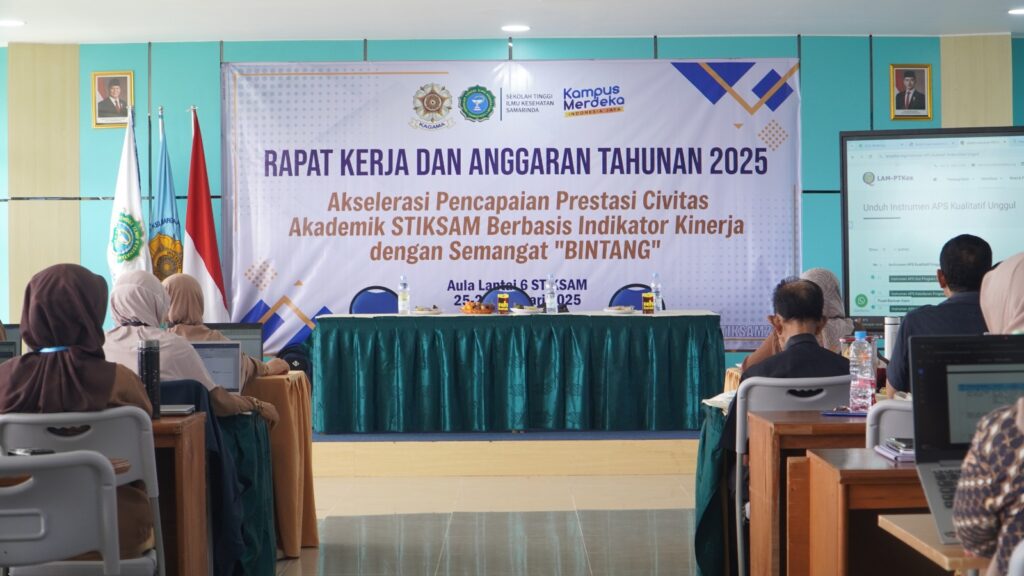 Sekolah Tinggi Ilmu Kesehatan Samarinda mengadakan rapat kerja dengan agenda Rencana Kerja dan Anggaran Tahunan (RKAT) untuk tahun 2025. Acara ini berlangsung pada 25-26 Februari 2025 di Aula STIKSAM Lantai 6 dan dihadiri oleh Ketua dan Sekretaris Yayasan Alumni KAGAMA Provinsi Kalimantan Timur, pejabat struktural fakultas, termasuk Ketua Senat dan Ketua STIKSAM, wakil ketua bidang, serta ketua program studi dan unit kerja di STIKSAM.