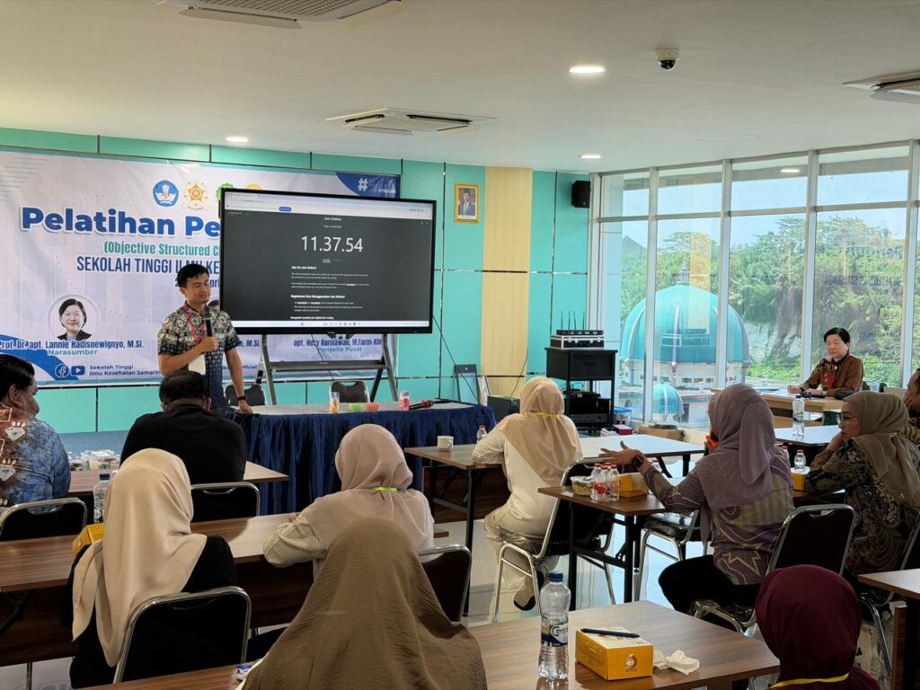 Materi pelatihan disampaikan oleh narasumber yang berpengalaman di bidangnya, yaitu Prof. Dr. apt. Lannie Hadisoewignyo, M.Si. dan apt. Akhirul Kahfi Syam, M.Si., dengan pendampingan dari Penyelia Pusat, apt. Hery Kurniawan, M.Farm-Klin. Para peserta mendapatkan pembekalan komprehensif mengenai konsep, standar, dan implementasi OSCE sebagai metode evaluasi kompetensi klinis yang objektif dan terstruktur.